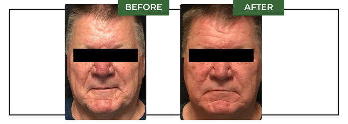 After IPL treatment, this patient noticed a reduction in under-eye bags and a more lifted appearance to his upper eyelid. With smoother skin and less shadowing around his eyes, his face appeared more relaxed and refreshed, transforming a once tired or stern-looking expression into one that’s calm, confident, and rejuvenated.